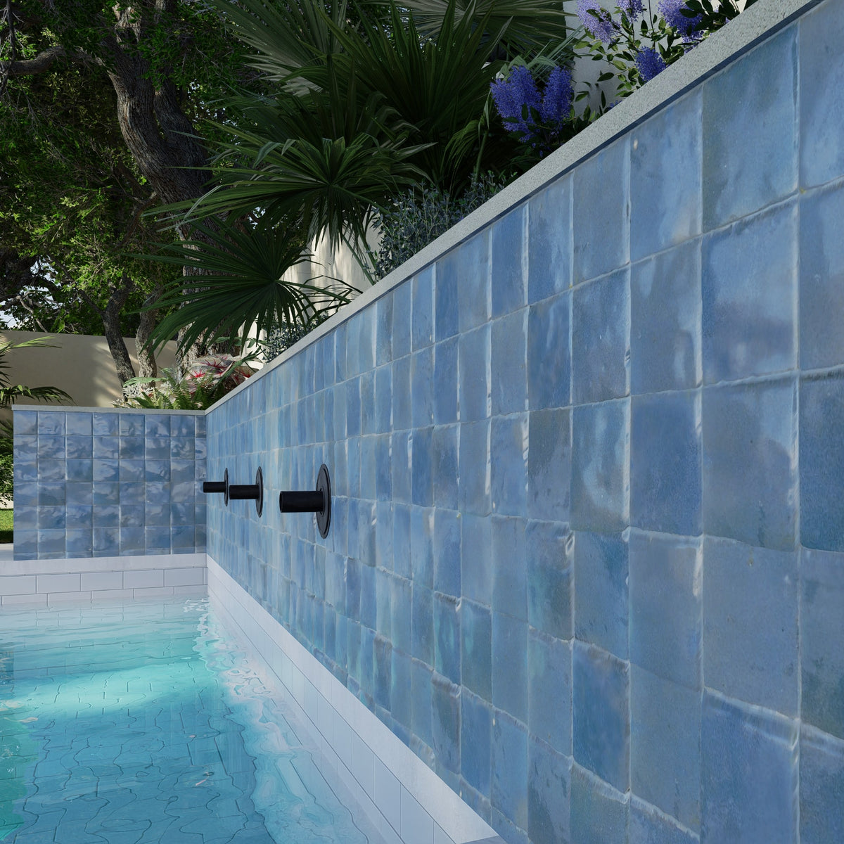 Our Stone Blue Zellige Tile in a 4x4 format combines the artistry of Moroccan craftsmanship with a soothing color palette. The gentle blue shades, reminiscent of calm horizons, make these Zellige tiles a versatile choice for both modern and traditional interiors.