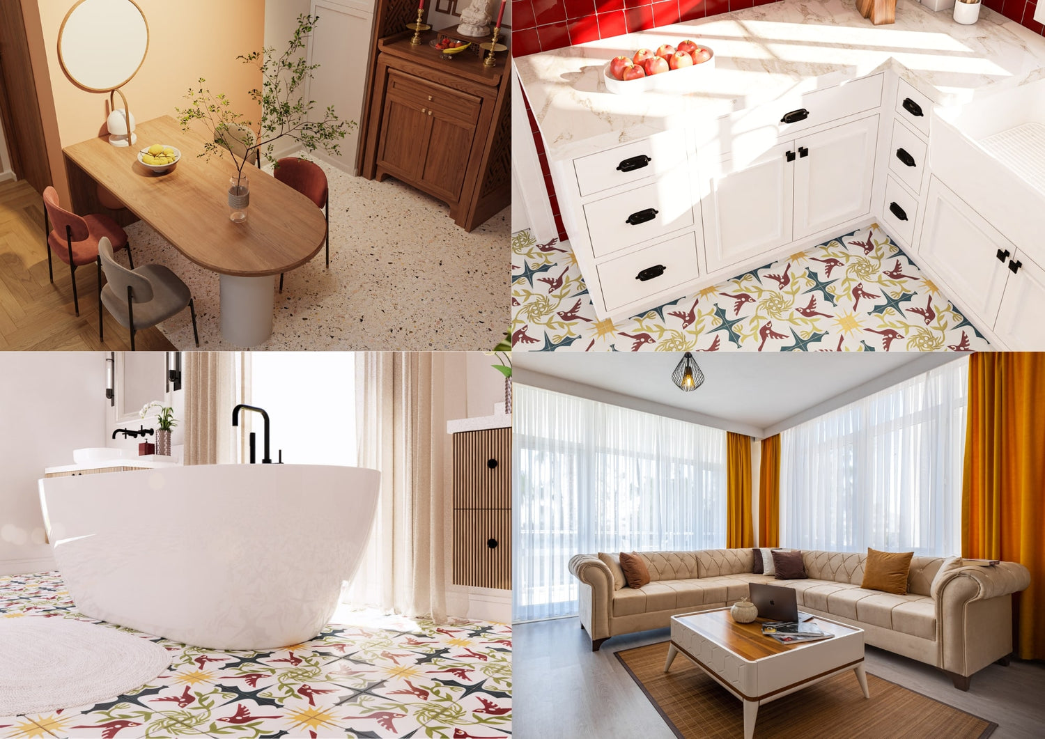 Meet 'Birds' by Adam Trest—a tile as free-spirited as Portland itself. This design feels like a sunlit morning in Forest Park, where the trees hum with life and nature weaves its own art. Bold reds, deep greens, and golden hues bring warmth, while the hand-drawn birds in flight add a story to your space. Whether you’re reviving a Craftsman home or adding character to a modern loft, this tile sings in any setting. Perfect for kitchens, bathrooms, or any corner that could use a little Portland charm.