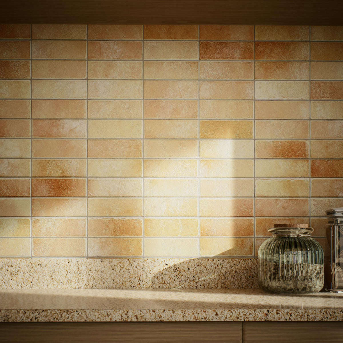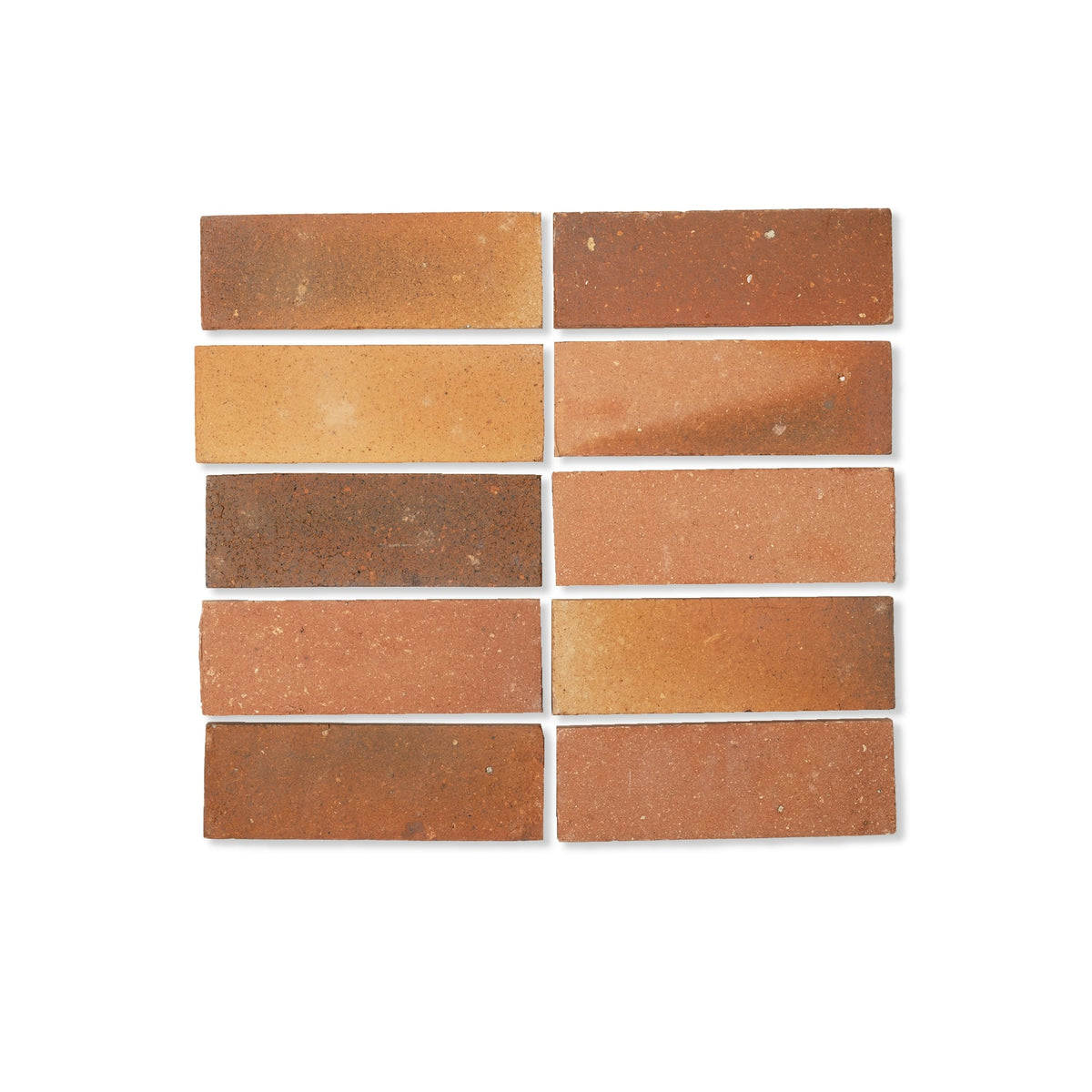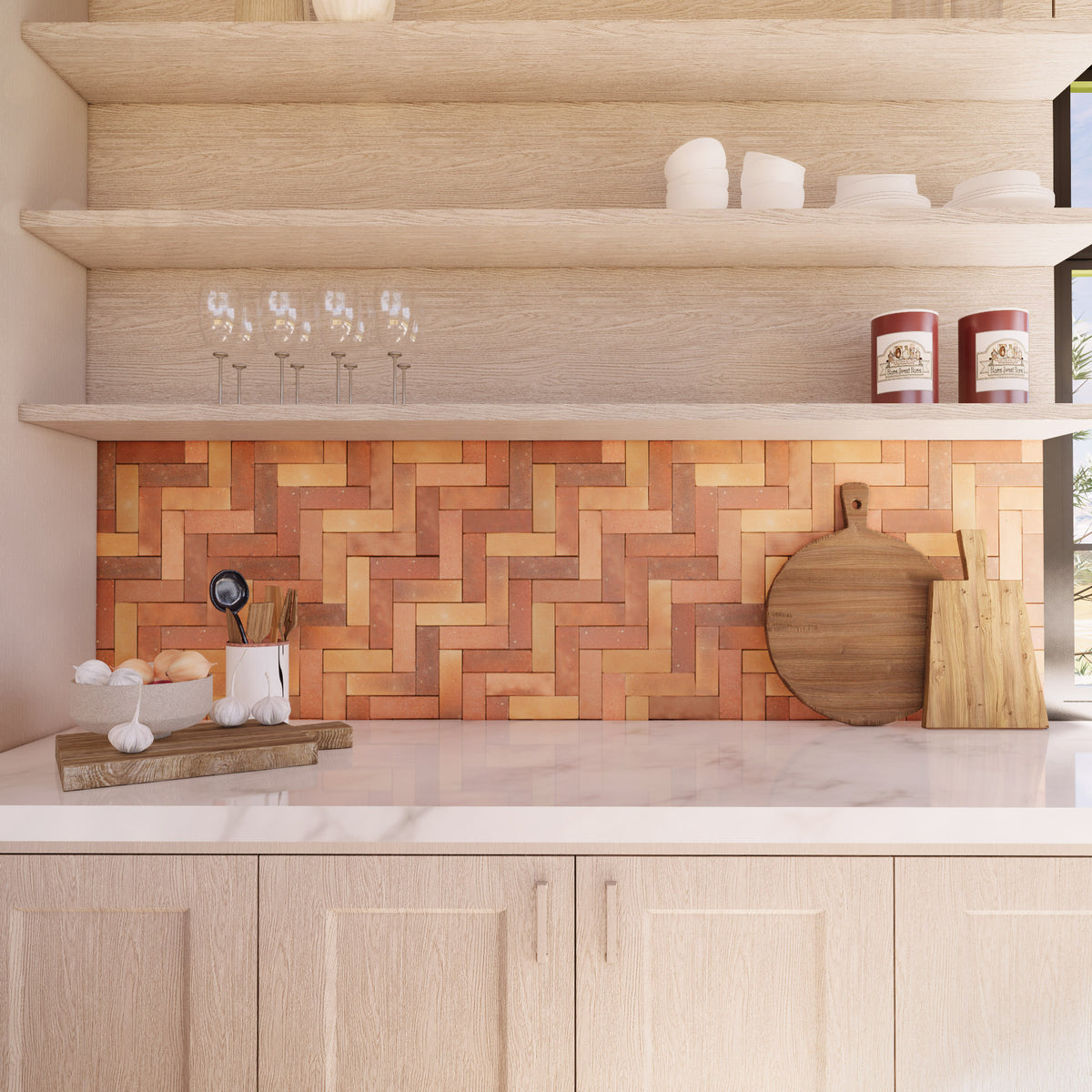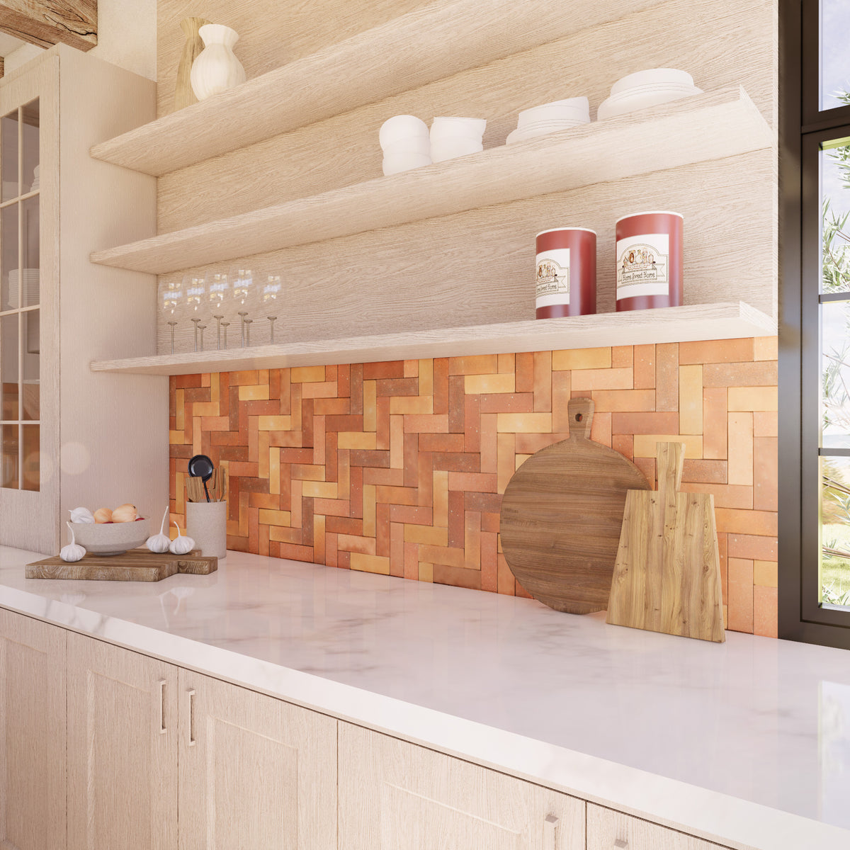 The Baguette Terracotta Tiles from the LiLi Terracotta Collection bring timeless sophistication to any space. Handcrafted using traditional terracotta techniques, these 2" x 6" tiles offer a unique blend of warm, earthy tones in three beautiful color variations. Their elongated shape makes them ideal for creating stylish backsplashes, accent walls, and vertical applications, adding a sleek yet rustic element to any room. Each tile reflects the unpredictability of the wood oven baking process, making every installation a unique masterpiece.