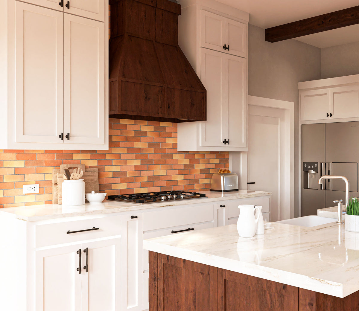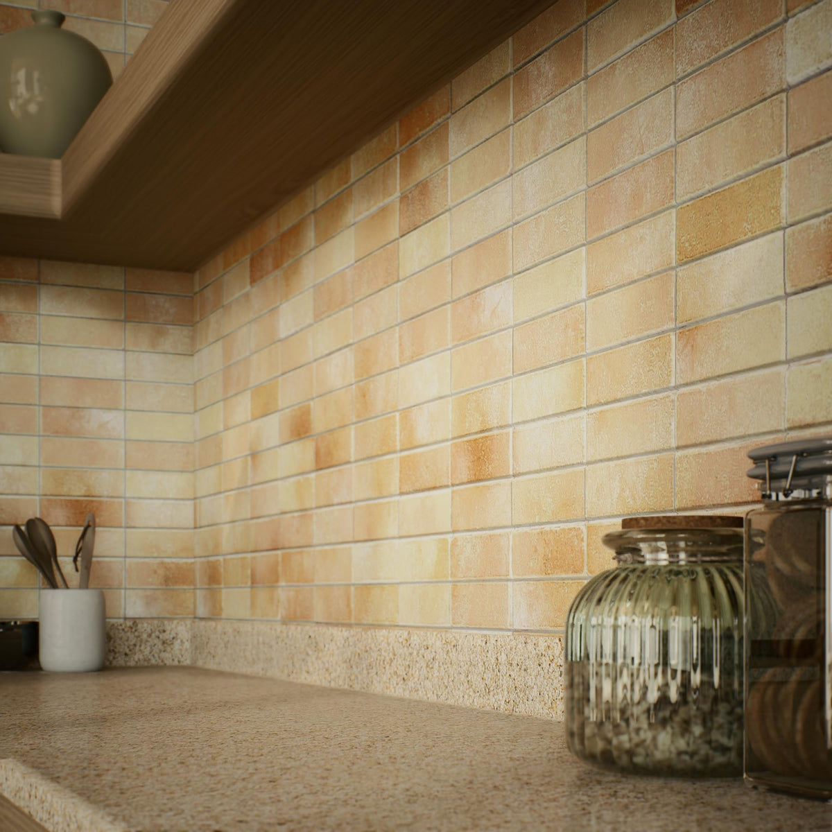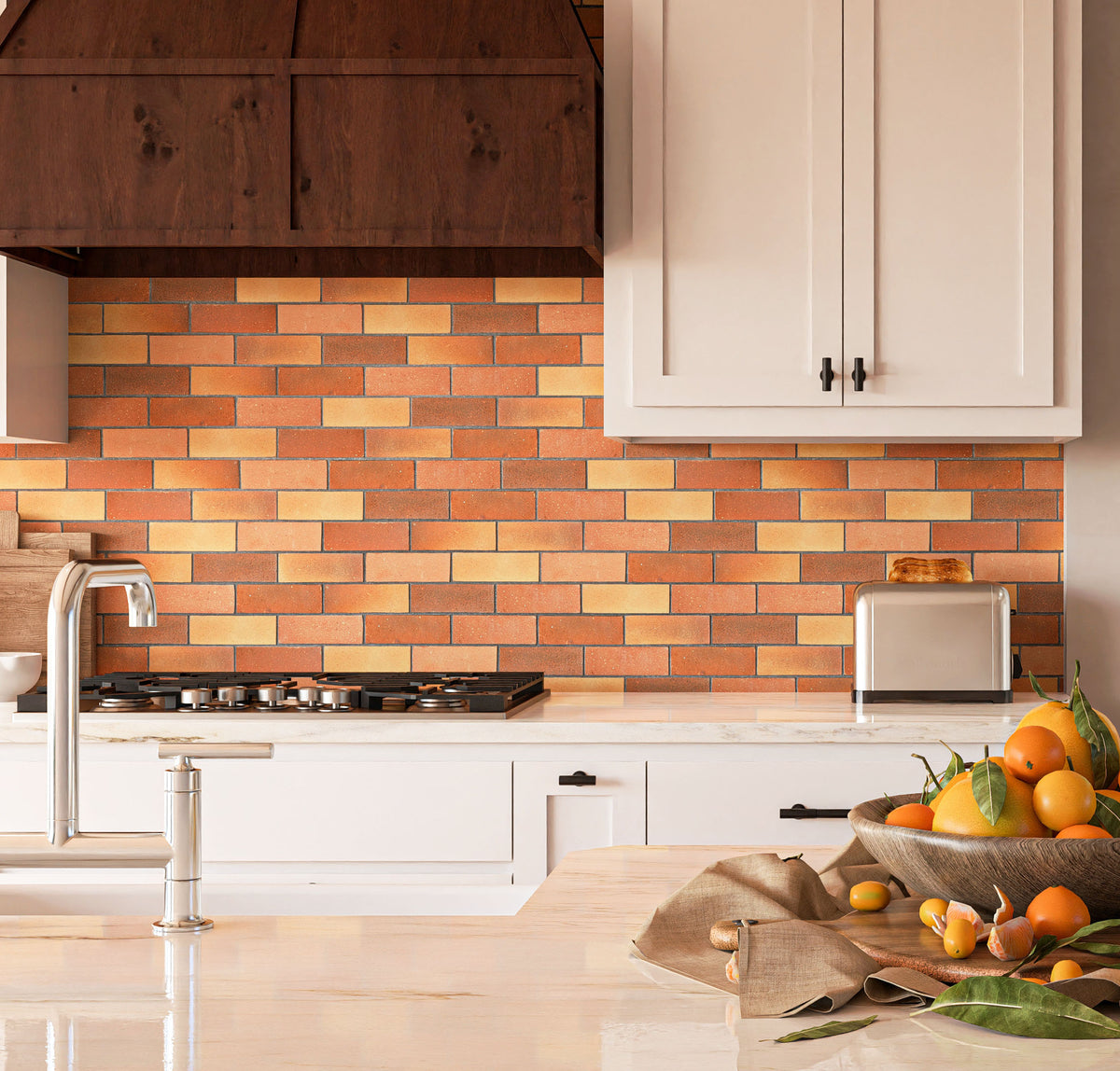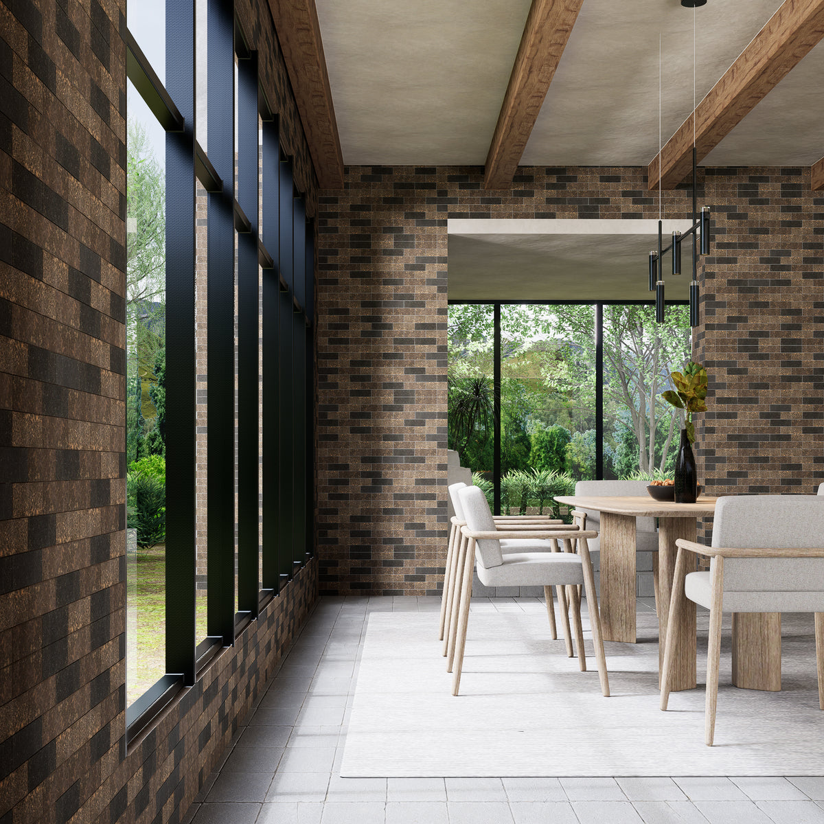 color variations. Their elongated shape makes them ideal for creating stylish backsplashes, accent walls, and vertical applications, adding a sleek yet rustic element to any room. Each tile reflects the unpredictability of the wood oven baking process, making every installation a unique masterpiece.