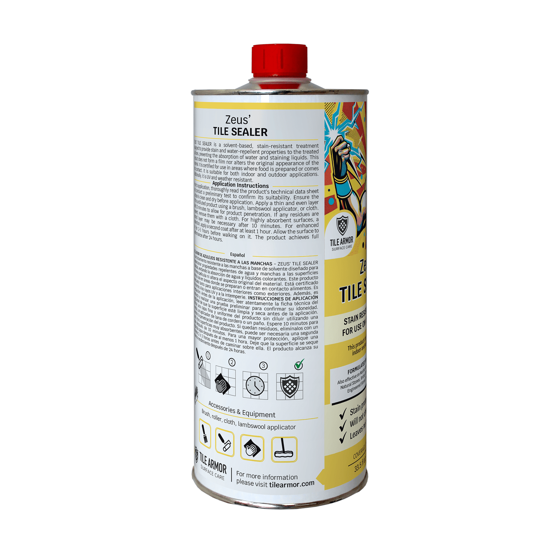 Once the surface is properly prepared, Demeter’s Terracotta Primer and Zeus’ Tile Sealer work together to protect porous tiles from the inside out. Demeter penetrates deeply to reduce moisture absorption and protect tiles during installation, while Zeus adds a durable, water- and oil-repellent finish that locks in long-term stain resistance. Together, they create a breathable yet powerful system that preserves the natural beauty of your tiles while making everyday care easier.