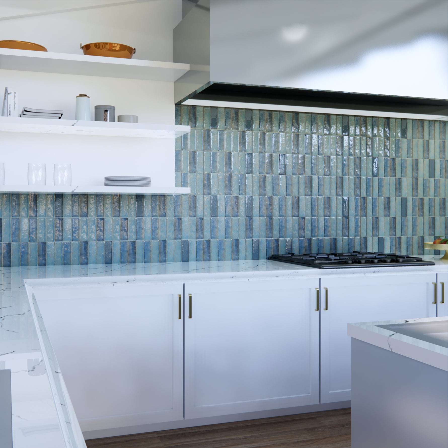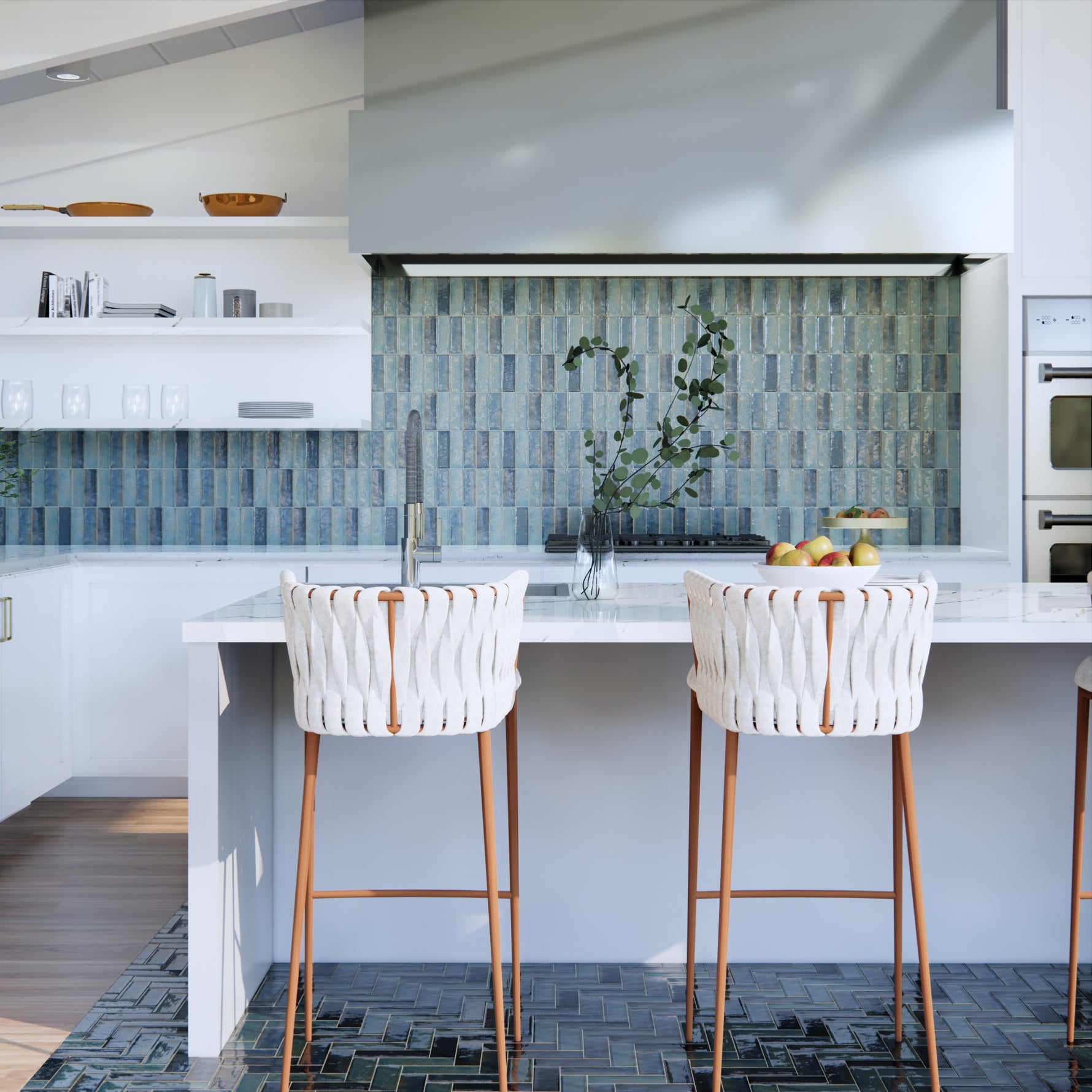 Infuse your space with instant style using our Denim Blue Zellige in a sleek 2x6 Bejmat size. Handcrafted from natural Moroccan clay, these elongated tiles capture the cool, timeless appeal of denim with a touch of Moroccan flair.