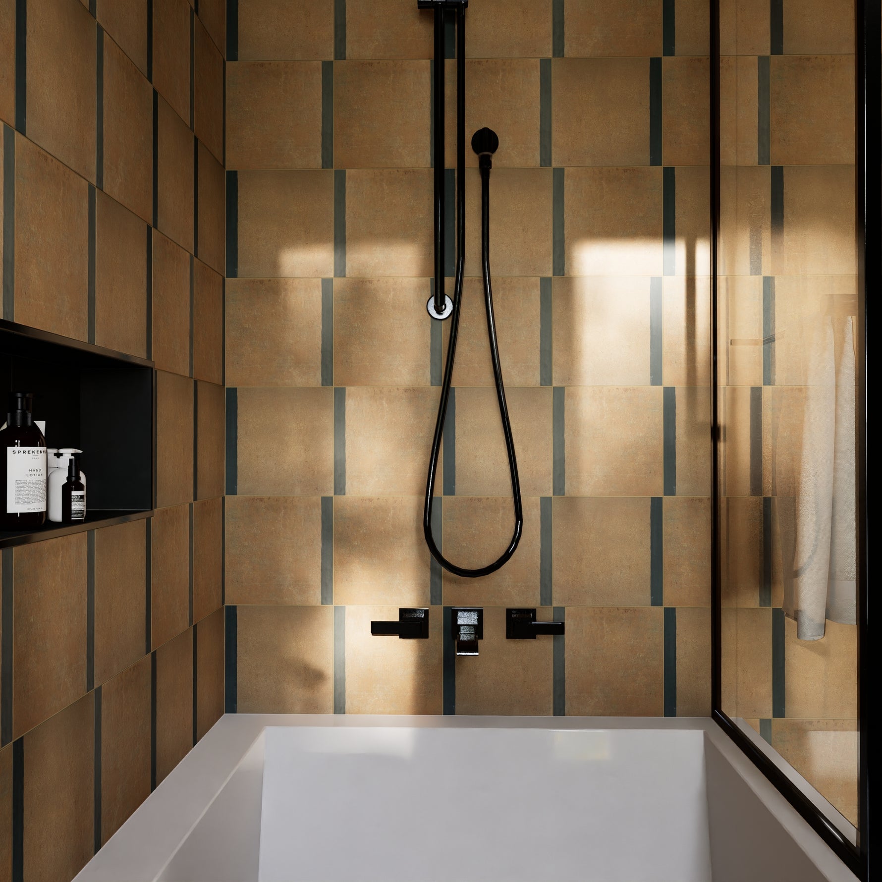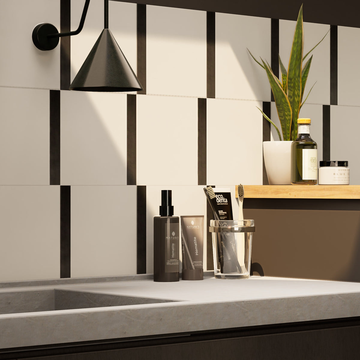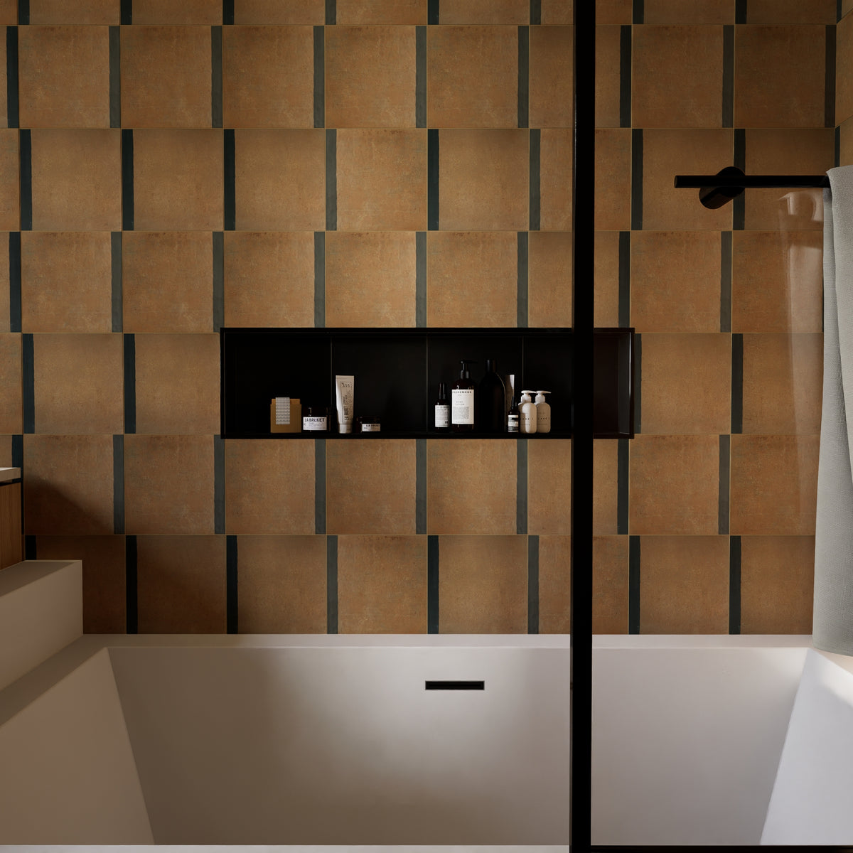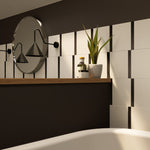 The Edge tile brings just a touch of warmth and contrast to your layout with a single band of color - available in Ochre, Graphite, Ink, and Chalk - anchored along one edge of a crisp white field. Made from high-quality porcelain and sized at 8" x 8", this tile balances earthy tone with minimal composition, ideal for walls and floors, rhythm-building patterns, or as a subtle accent among bolder designs. Pair with matching Parchment or Plaster tiles or with other tiles in the Trace Collection for a cohesive look.