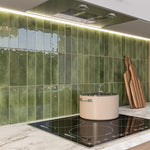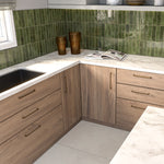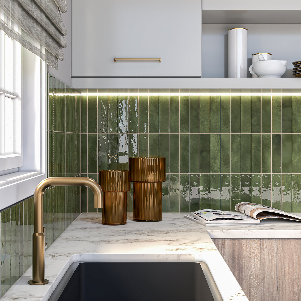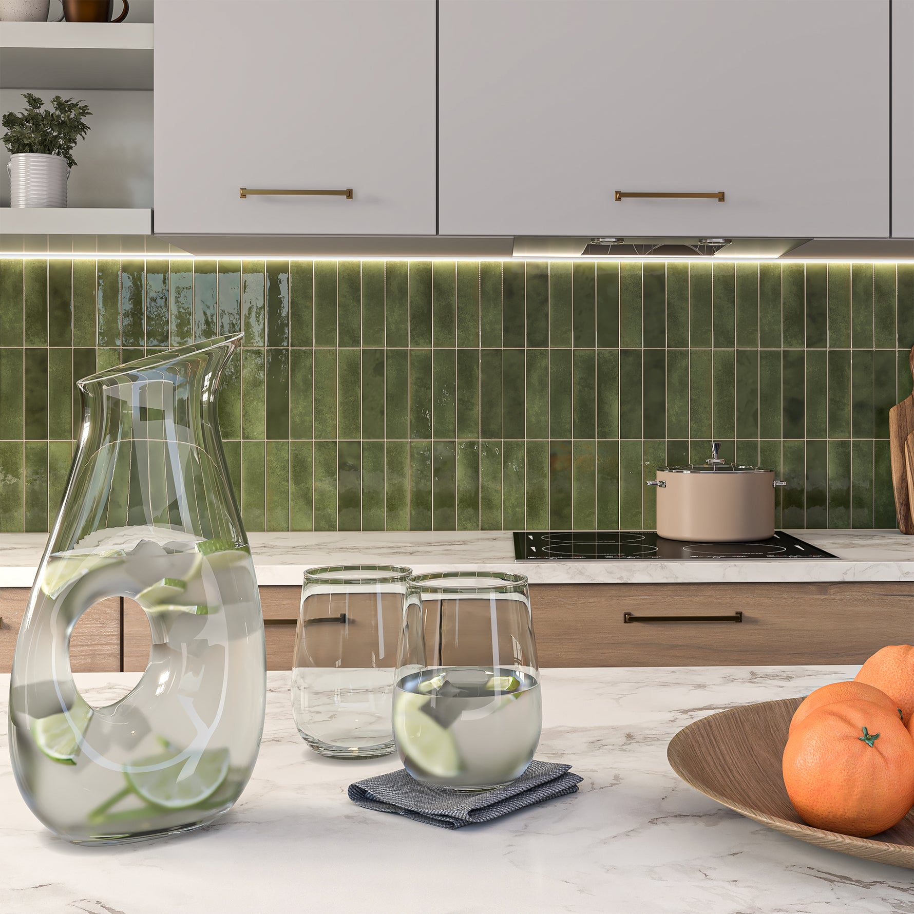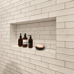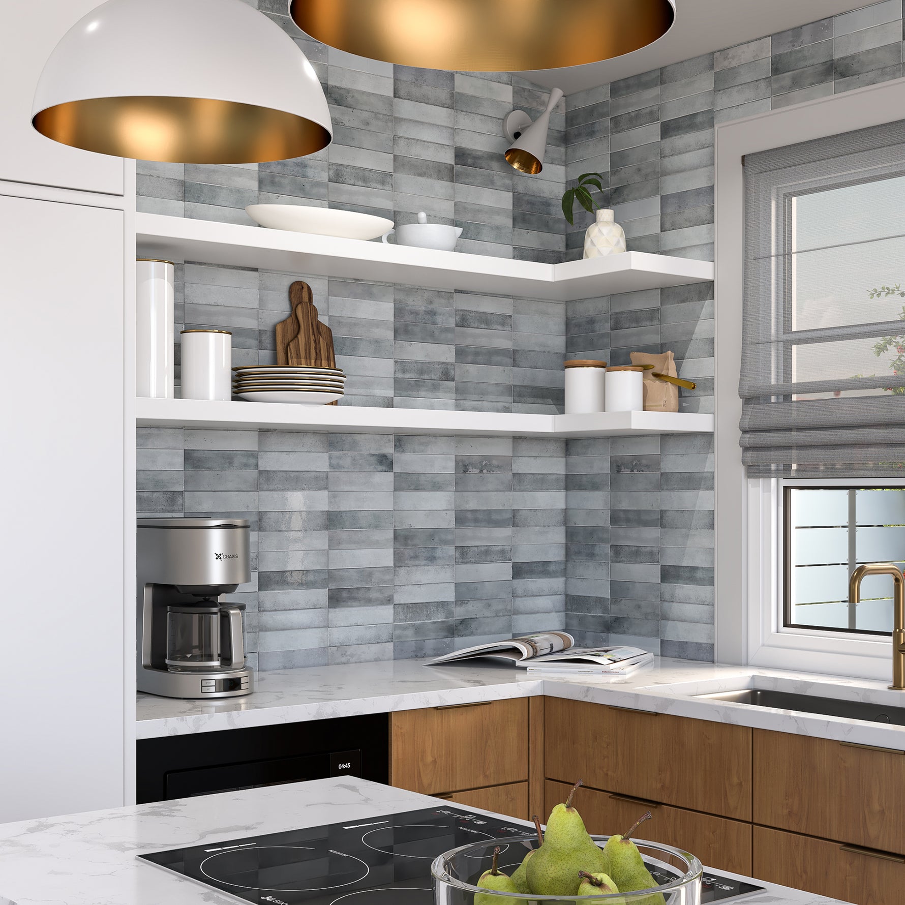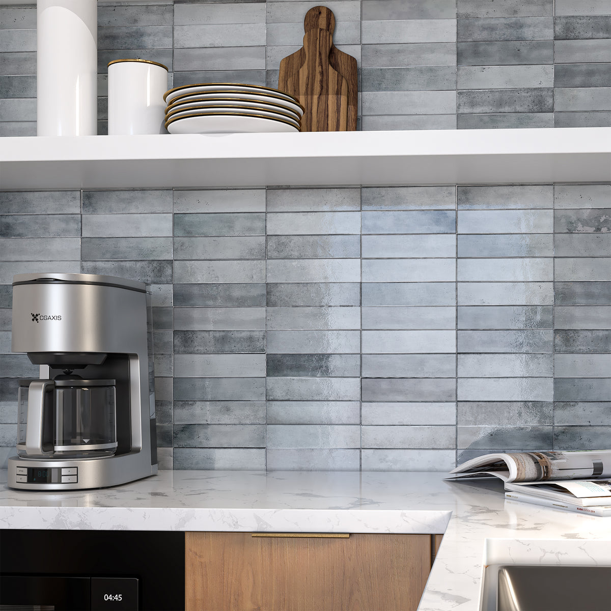 Crafted in a slim 2" x 8" format, these tiles invite creativity - perfect for stacked, offset, or herringbone wall layouts. Their creamy, subtly speckled surfaces reflect light with a soft, burnished sheen, lending both texture and sophistication. The palette harmonizes effortlessly with wood, metal, and stone, offering a versatile foundation for interiors that balance modern refinement with natural warmth.