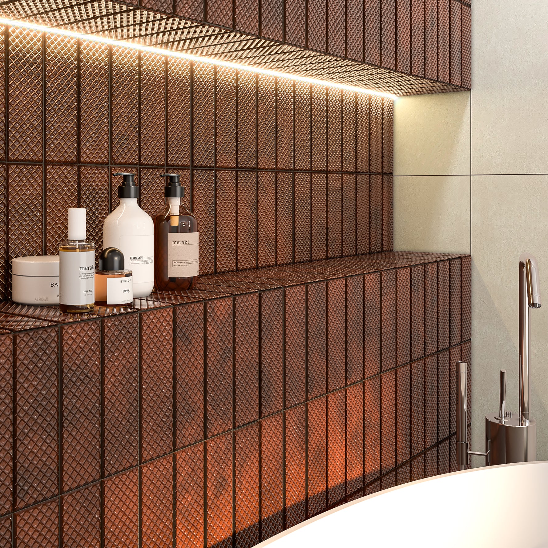 The Woven tile reinterprets the coarse charm of natural fibers in a rich ceramic form. Measuring 2.5" x 8", it features a tightly woven relief that adds both visual depth and tactile appeal - balancing artisanal warmth with structured precision.