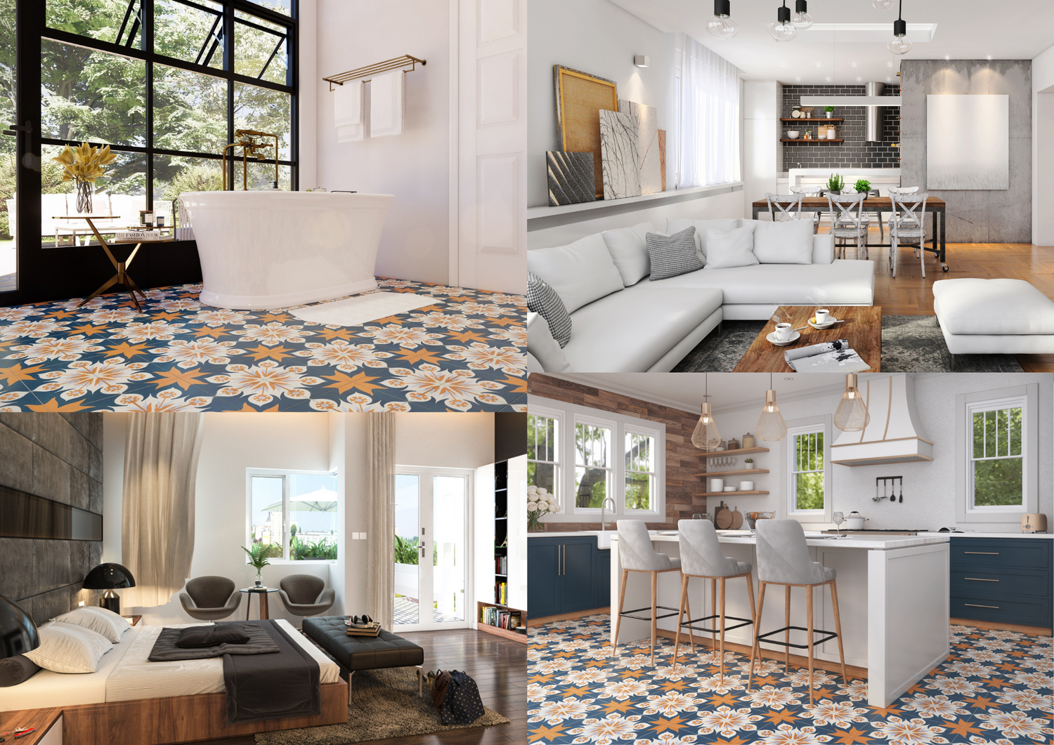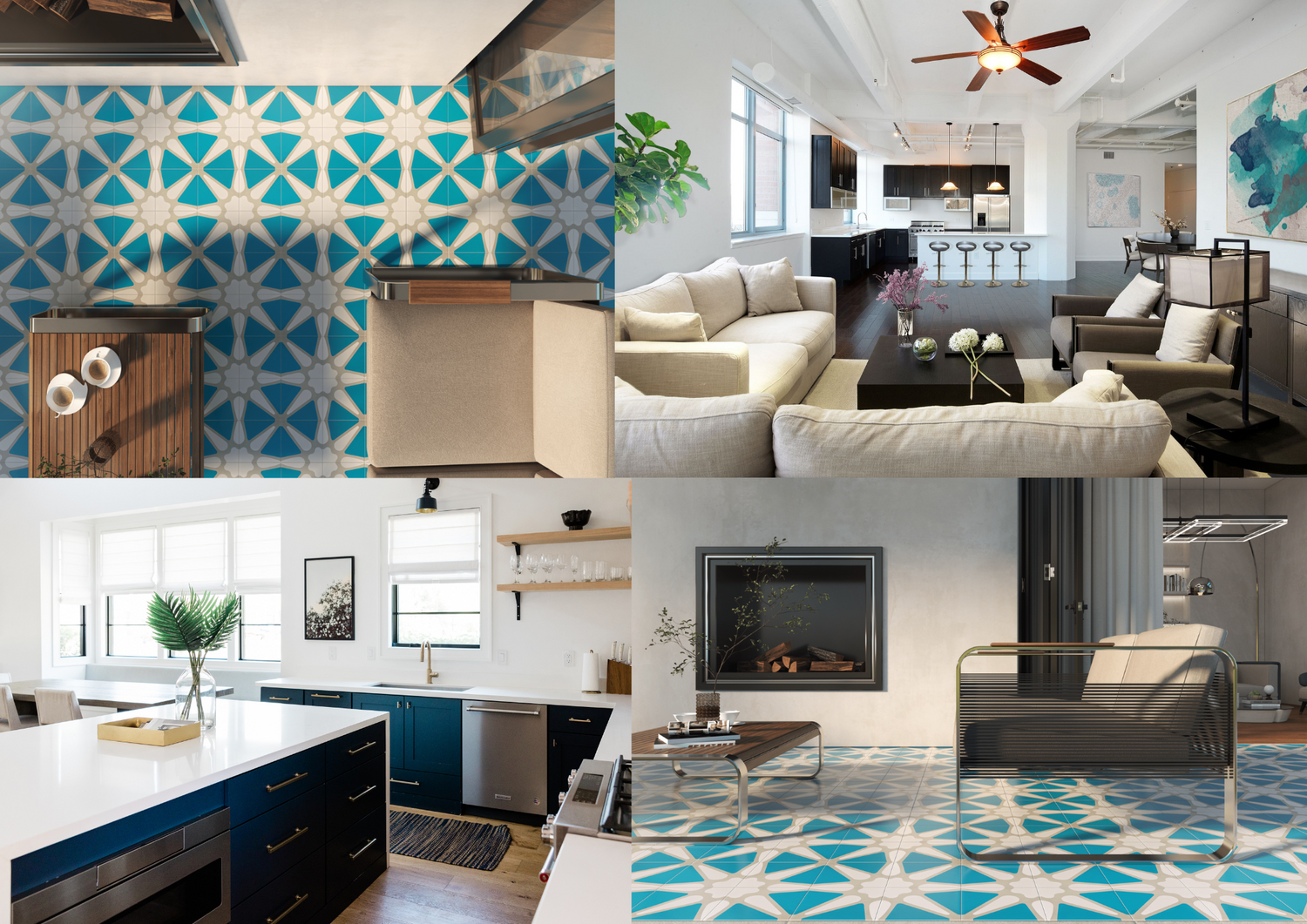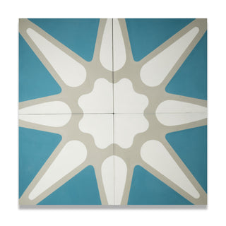 Our Ilio Milano tile brings the essence of Miami into your home—a stunning blend of turquoise blues and crisp whites that mirror the city’s endless skies and sparkling waves. Its bold, starburst pattern feels like a celebration of sunny days and ocean breezes, radiating energy and life into any room.