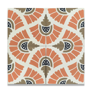 Fan by Hollis Callas feels like Miami’s heartbeat captured in a tile. The design echoes the sweep of palm fronds dancing in the breeze and the radiant sunsets casting coral hues across the skyline. With its bold pattern and rich tones of coral, taupe, and navy, this tile channels the city’s vibrant energy and timeless Art Deco allure.