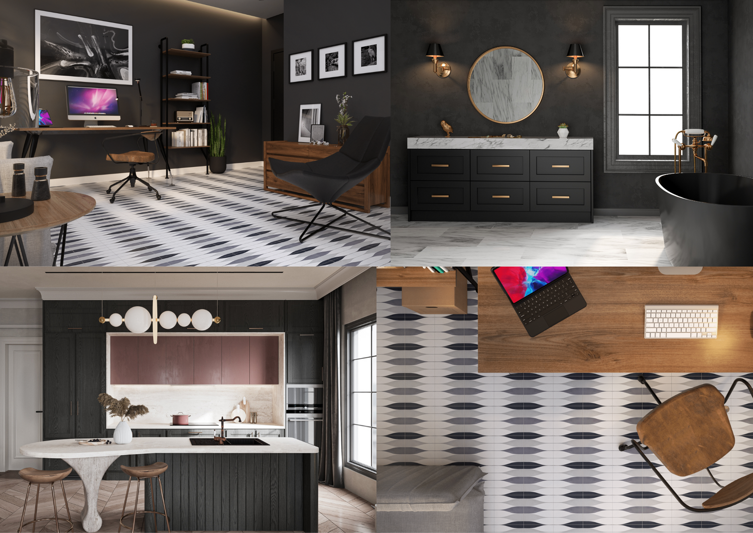 Its crisp black-and-white contrast is a nod to classic checkerboard floors in old-school diners and Art Deco lobbies, but with a fresh, modern edge. Whether in a sleek Upper East Side kitchen, a chic SoHo loft, or a bold Brooklyn dining space, Dots 2 brings a timeless sophistication that fits anywhere in the city.