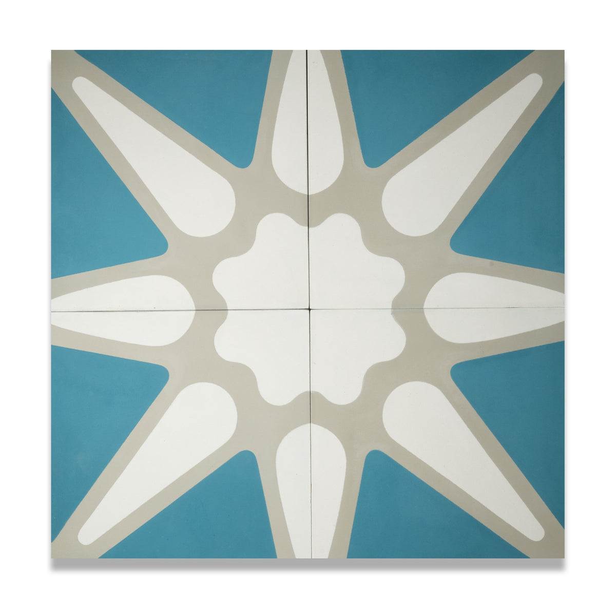 The Ilio Milano Style Cement Tile draws inspiration from the scenic Northern Italian coastline, featuring a bold star pattern that offers a modern take on a classic design. Handcrafted from premium cement, this tile is available in two stunning color variations—gray and white stars on either a dark gray or ocean blue background. The 8” x 8” Ilio Tile is perfect for adding coastal charm and timeless beauty to walls, floors, or backsplashes.