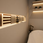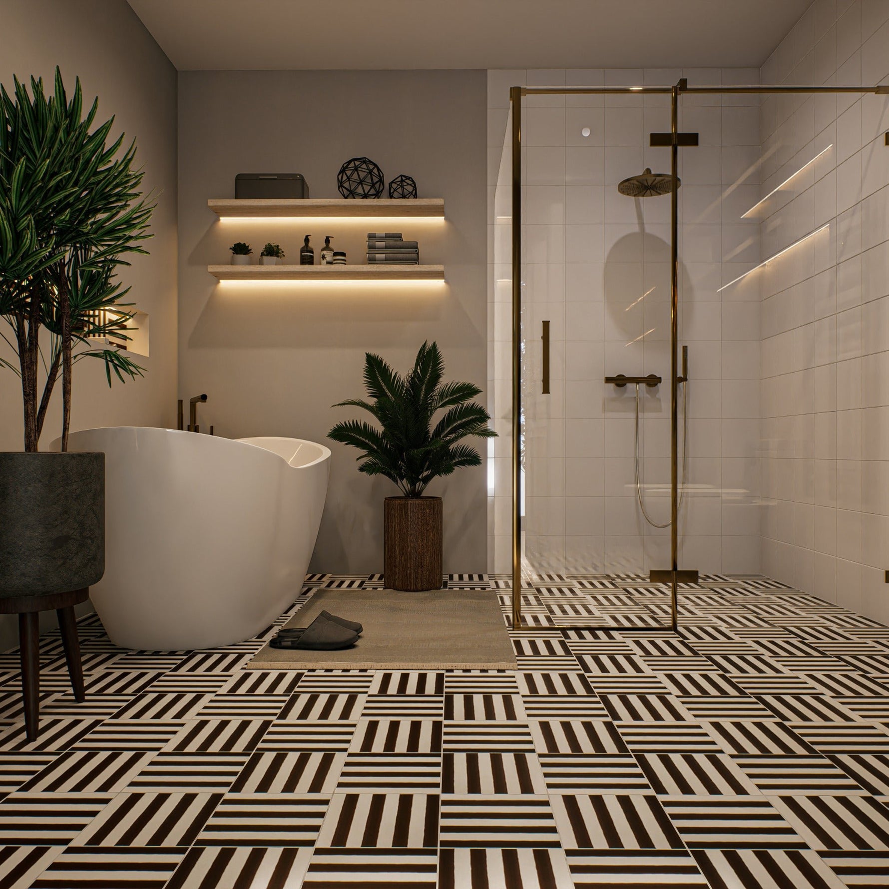 Crafted from durable porcelain, Lines tile is designed for interior walls and floors. Use it to build repetition or contrast, to frame a focal point, or cover a surface in visual cadence, pairing with companion tiles in the Trace Collection. Its graphic simplicity makes it an unexpected neutral - adaptable, modern, and expressive in every hue.