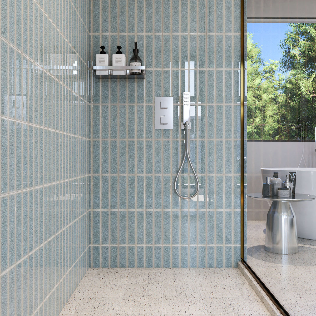 Bring the calm, refreshing tones of the sky into your home with the Marine Blue Glaze Tile from the LiLi Glaze Collection. These 2” x 8” porcelain tiles feature a soft, sky-blue hue with delicate crackle detailing, creating a unique, handcrafted look for any space. Whether you’re designing a modern bathroom or updating a pool, the Marine Blue Glaze Tile adds a fresh, tranquil touch to your walls.