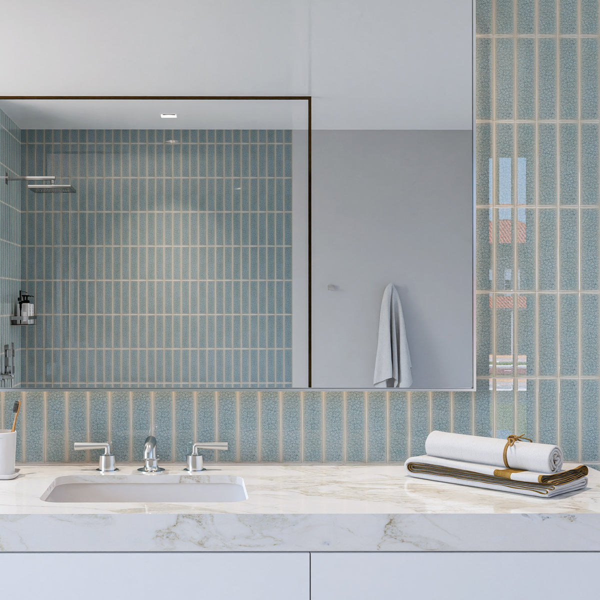 Our Glaze porcelain tiles exhibit naturally occurring crystal and crackle detailing, which makes each tile as unique as the application it’s installed in. Requiring little maintenance, these tiles can be used as decorative accents or full wall statements.