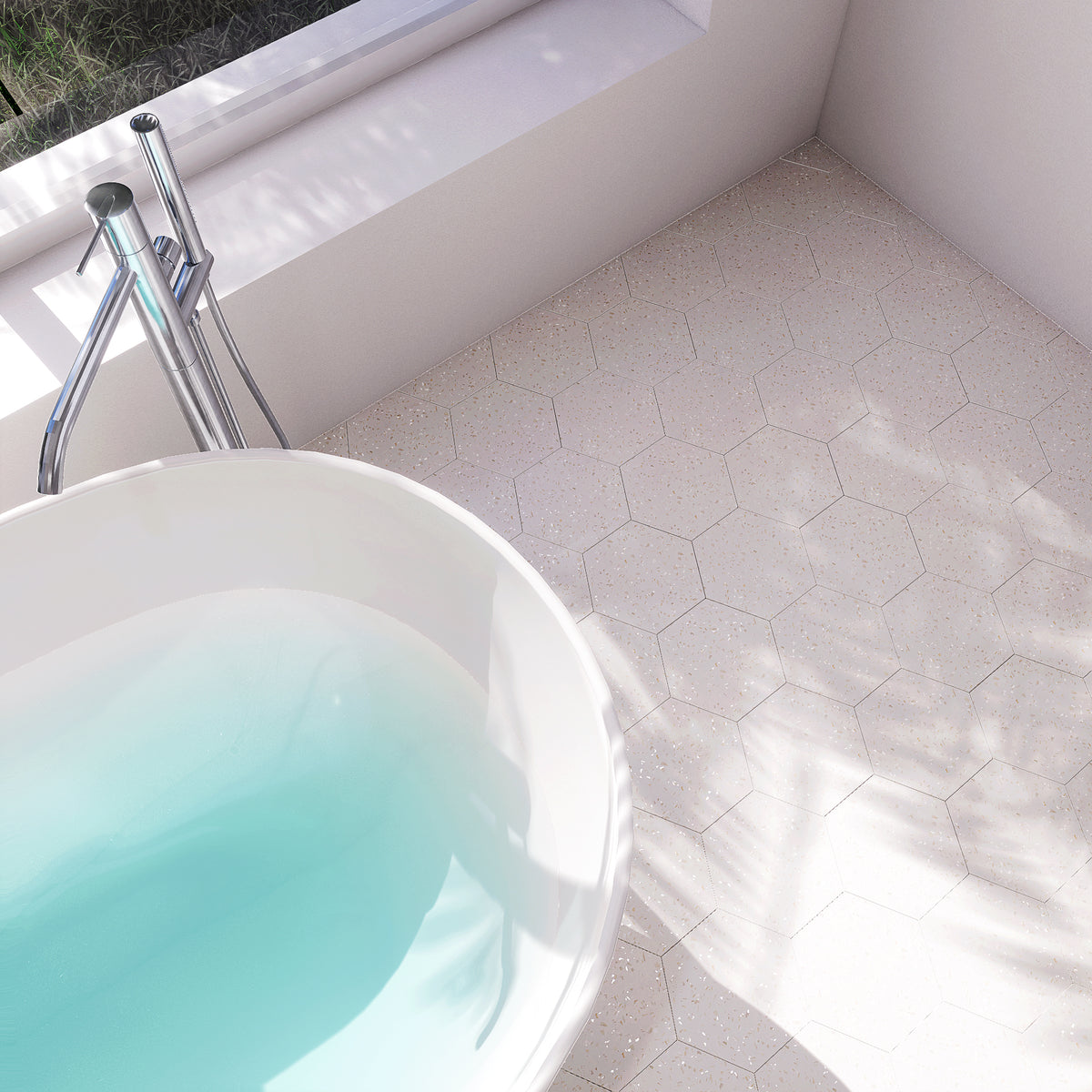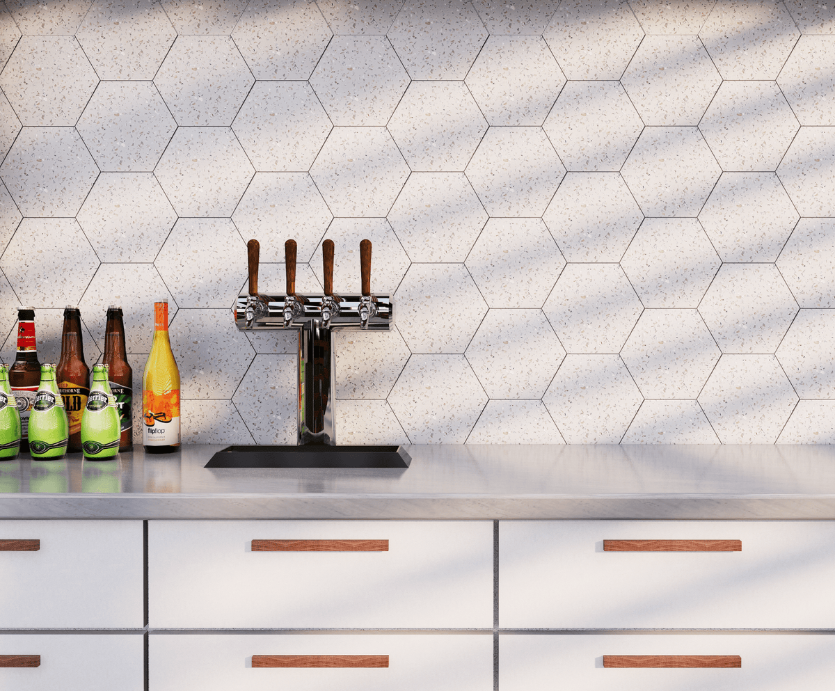 Mother of Pearl Terrazzo 8"x9" Hexagon Floor & Wall Tile