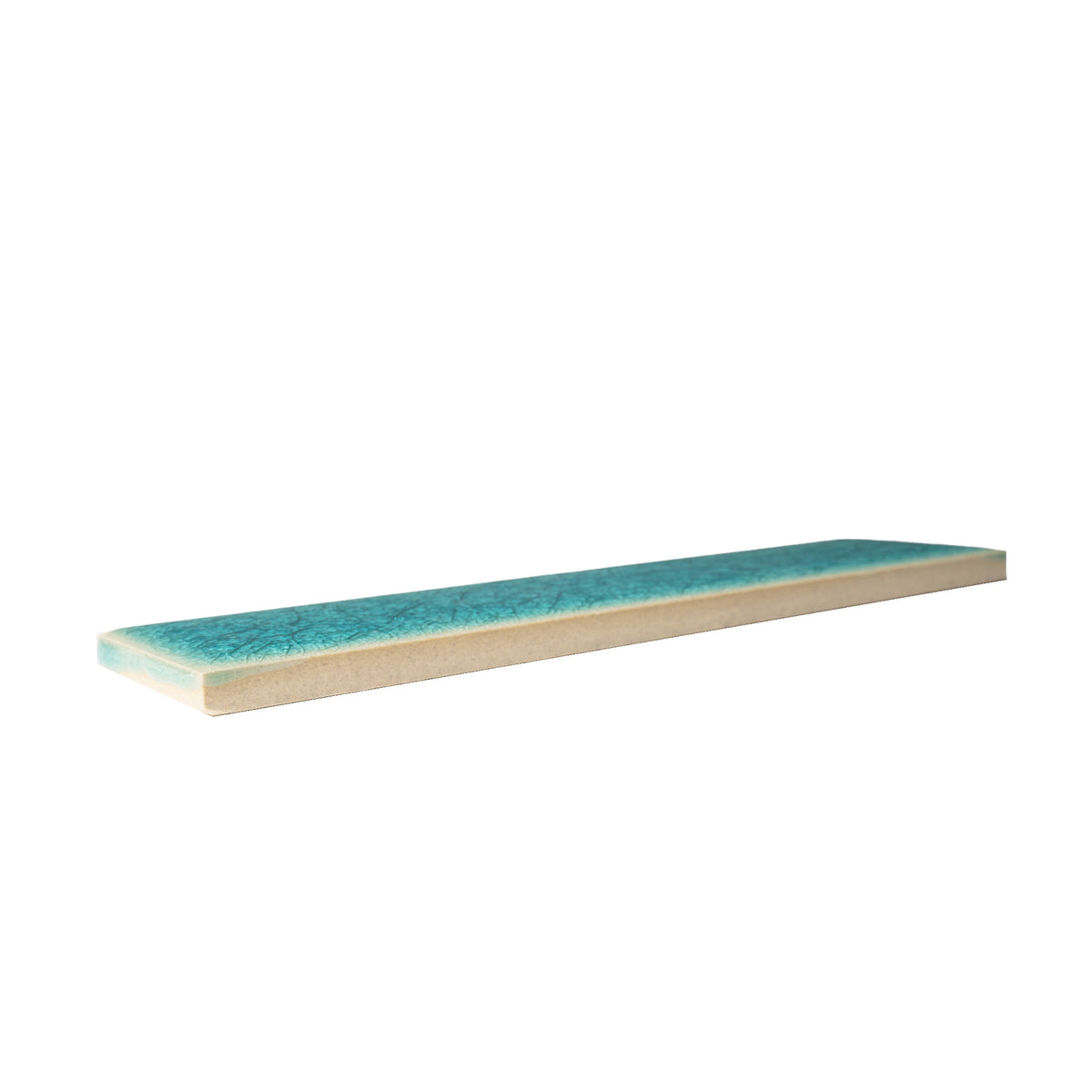color to your space. Featuring a soft teal blue hue and delicate crackle detailing, these 2” x 8” porcelain tiles offer a unique, handcrafted look. Whether installed in a bathroom, as a backsplash, or around a pool, the New Aquamarine Glaze Tile adds a serene, ocean-inspired touch to any design.