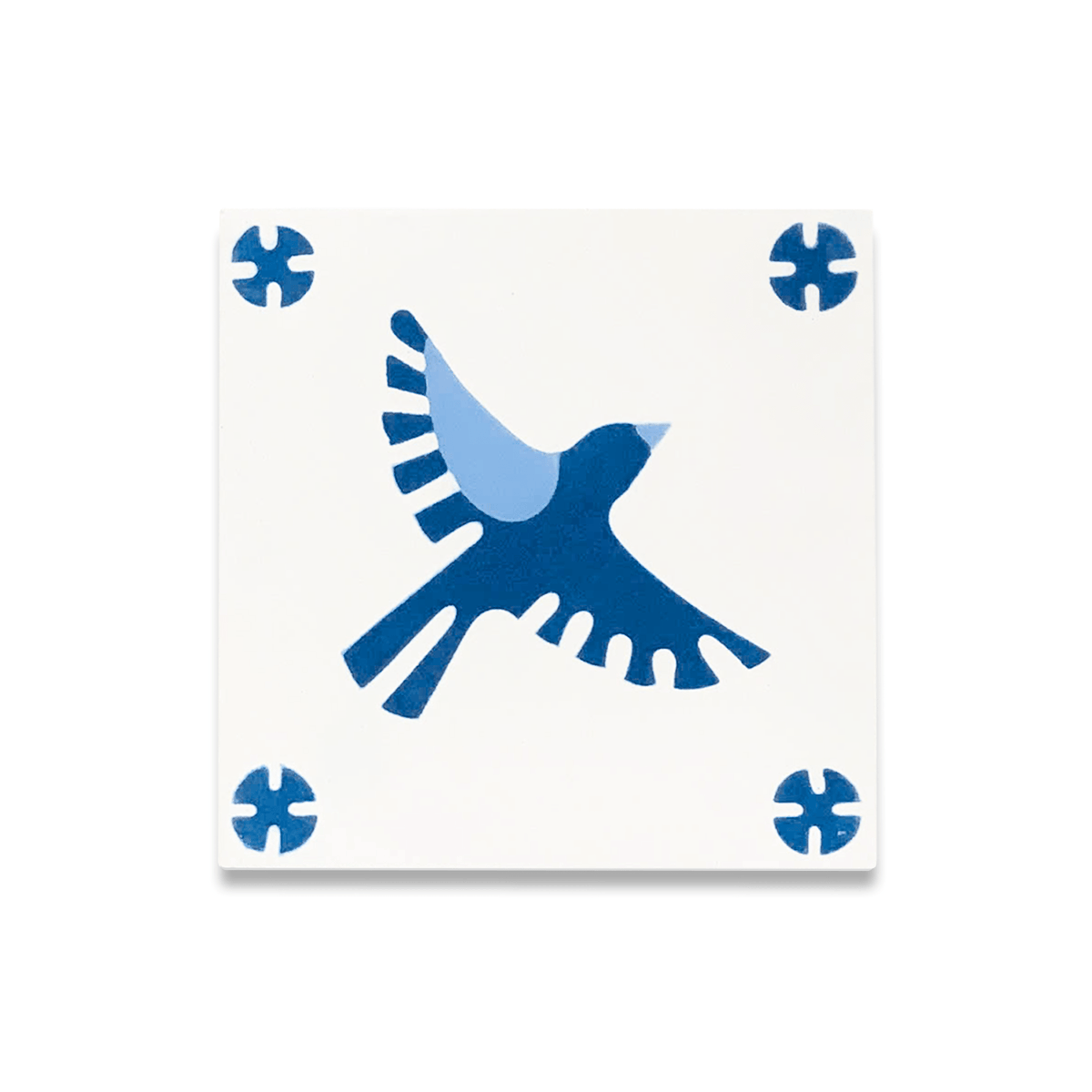 Pardal takes flight with the graceful silhouette of a sparrow mid-air, rendered in layered shades of blue. Designed by Adam Trest for the Azul Collection, this 6x6 cement tile brings a sense of motion and lightness to any surface. It’s a perfect way to add rhythm, whimsy, and a gentle nod to nature to kitchens, bathrooms, or breezy outdoor walls.