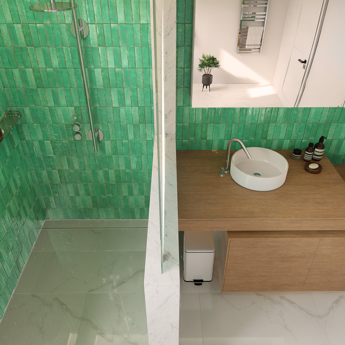 Maintenance: Zellige tiles are low maintenance. Clean tiles with mild soap and water.