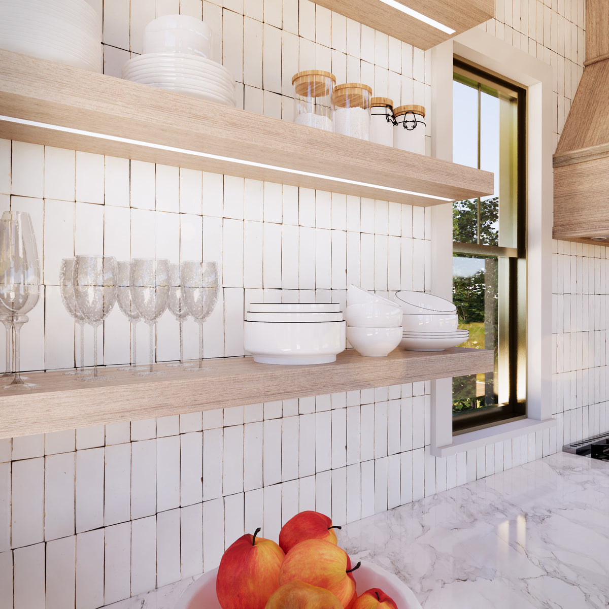 Discover the timeless elegance of the Soft White Zellige Tile in a 2x6 Bejmat size, meticulously handcrafted from natural Moroccan clay. These bright white tiles deliver a pure and radiant finish, ideal for opening up and brightening any interior space.
