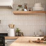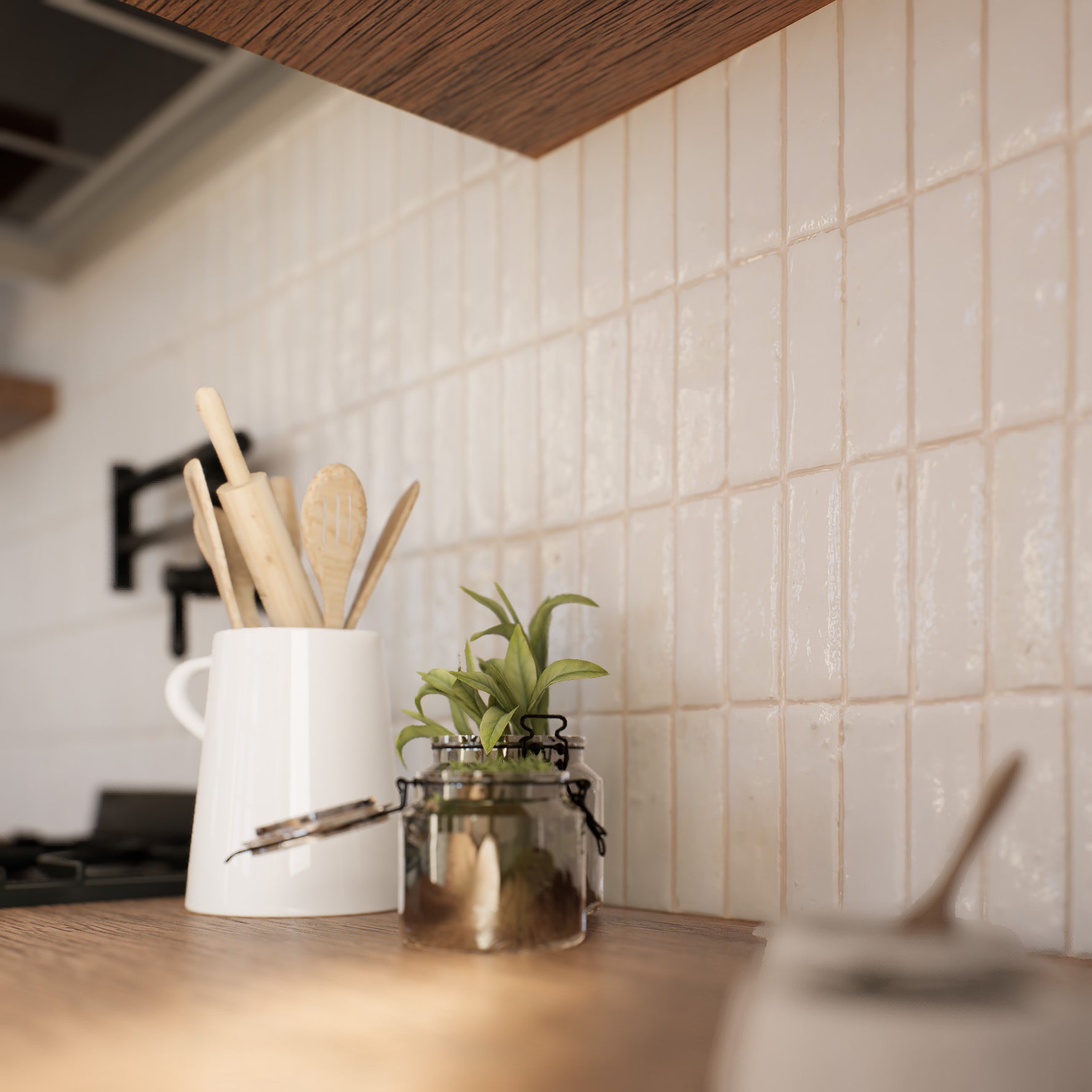Discover the timeless elegance of the Soft White Zellige Tile in a 2x6 Bejmat size, meticulously handcrafted from natural Moroccan clay. These bright white tiles deliver a pure and radiant finish, ideal for opening up and brightening any interior space.