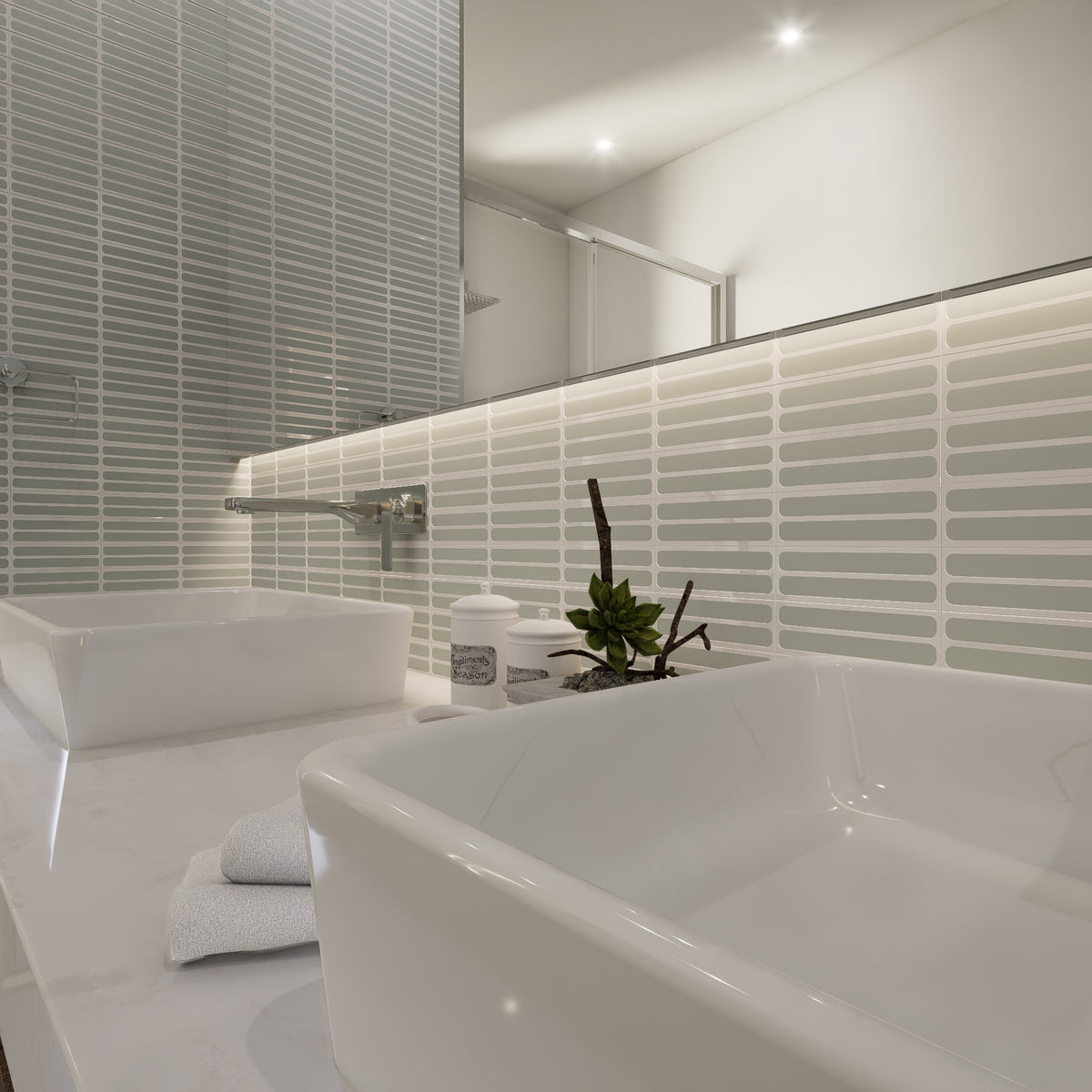 Perfect for accent strips, full backsplashes, mixed-format walls, and floors, Stack balances contemporary minimalism with artisanal charm. It’s a standout tile with just enough structure to feel modern, and just enough warmth to feel timeless. Pair with companion tiles in the Forma Collection for seamless visual storytelling.
