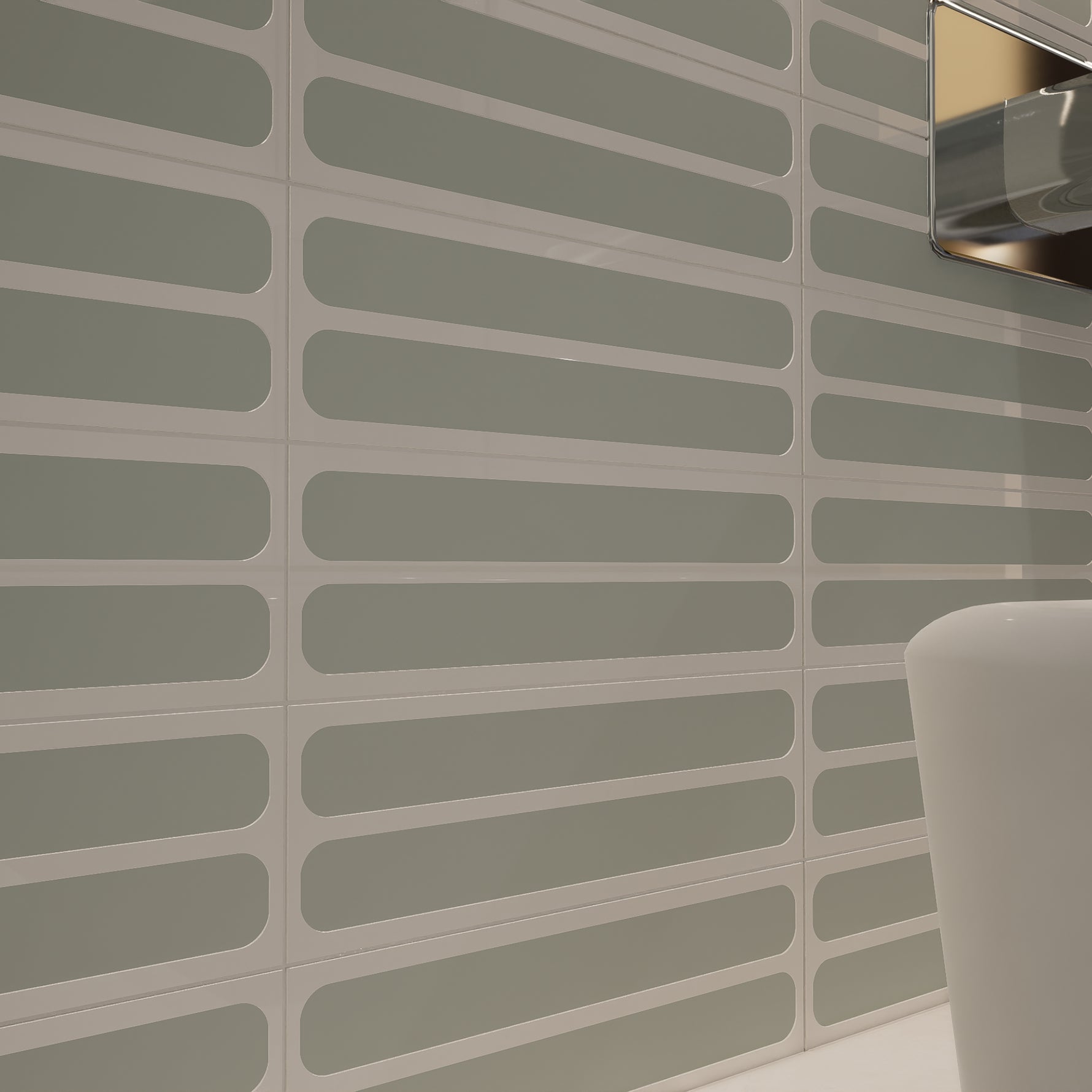 The Stack porcelain tile reimagines a linear pattern with a soft, graphic touch. Crafted from high-quality porcelain in a 2" x 6" format, this design features a gently hued base - available in Oyster, Toast, Blueberry, and Fennel - with two rounded rectangular insets of crisp white that add playful geometry and subtle contrast. The glazed accents soften the form and introduce dimensional depth, making it an ideal feature tile.