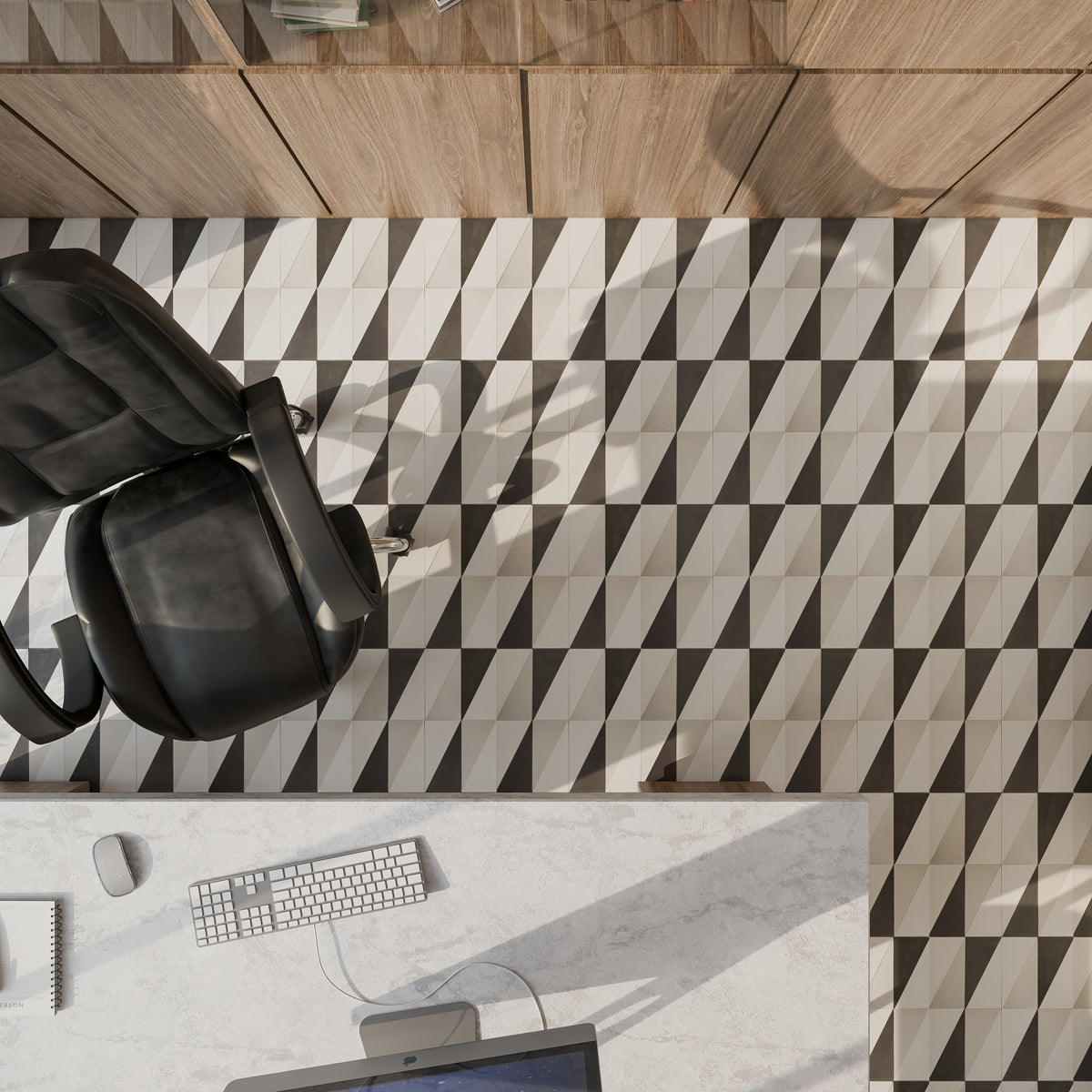 The Vegas Cement Tile is anything but a gamble when it comes to design. Featuring sleek triangles that come together to form a vibrant, eye-catching pattern, this tile is especially striking when used in a random mix. Handcrafted from premium cement, the 8” x 8” Vegas Tile offers both durability and style, making it the perfect choice for walls, floors, or backsplashes.